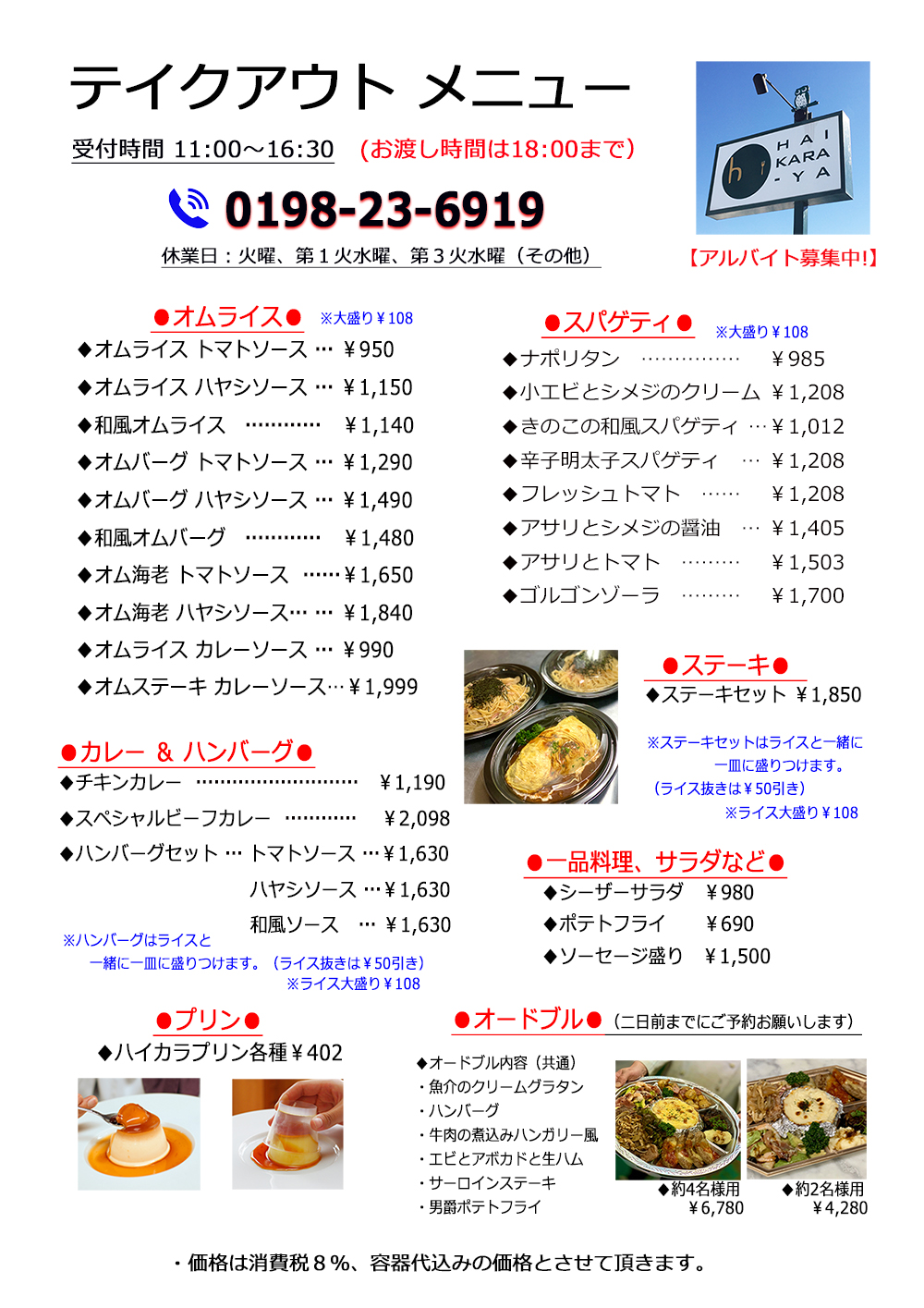 オムライス/ハンバーグ/スパゲティ/一品料理/オードブル/デザート など